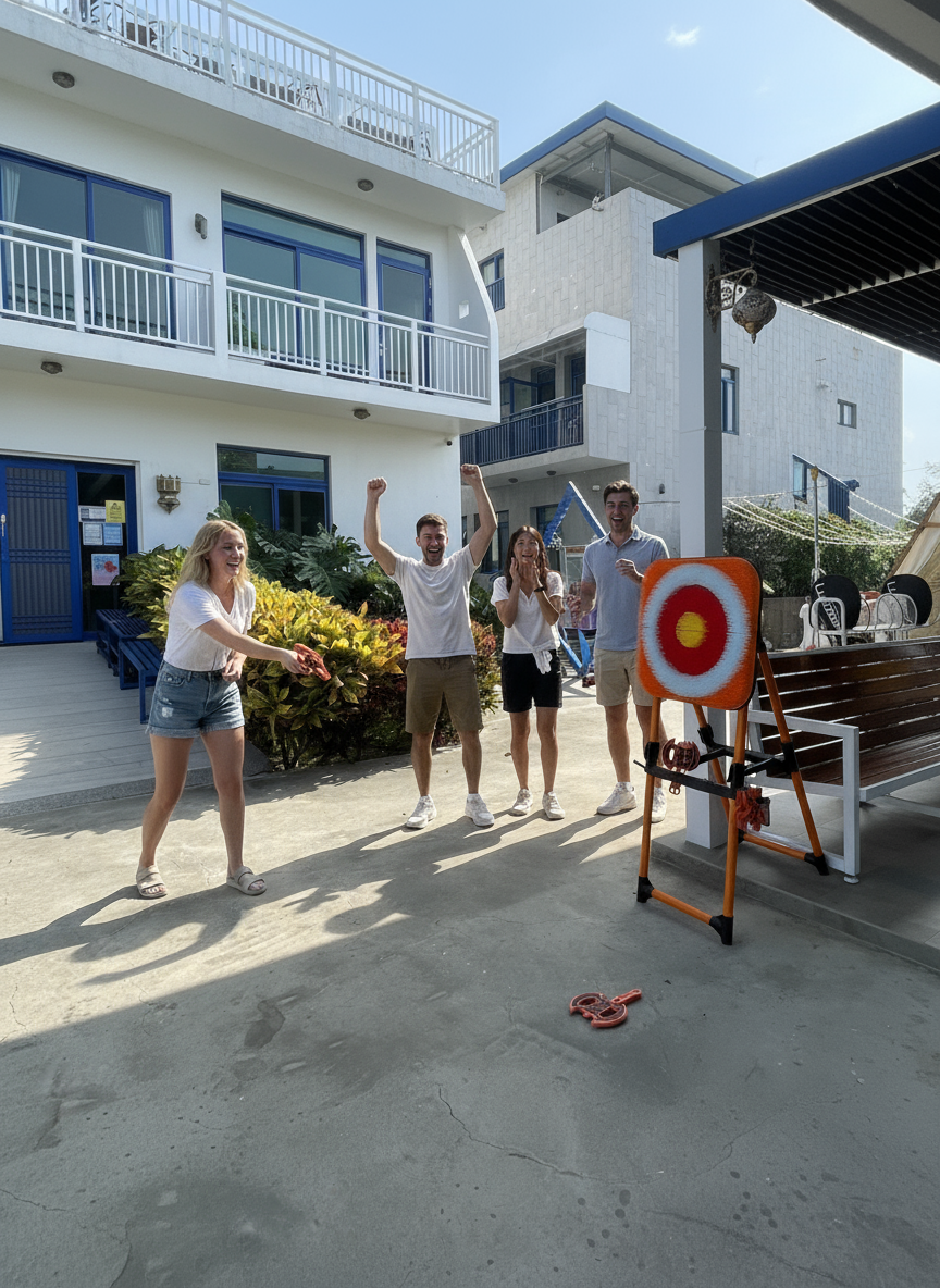 誰說放鬆一定要靜態?在旅境民宿的戶外投擲區,你可以盡情釋放壓力、展現準度!