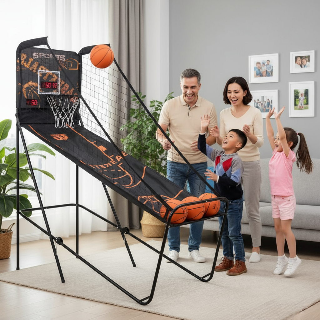 度假不只放鬆,更要把全家的默契值投到滿!【室內投籃遊戲機】讓大人小孩都能在安全舒適的空間裡,來一場熱血又不失趣味的「親子PK」。從瞄準、出手到「刷」的一聲,孩子在遊戲中練習手眼協調與專注,爸媽則化身最佳隊友與應援團,彼此的笑聲與擊掌,正是最珍貴的旅行記憶。就算遇到雨天或晚間時段,也能盡情放電、輕鬆流汗,把日常壓力留在場外。