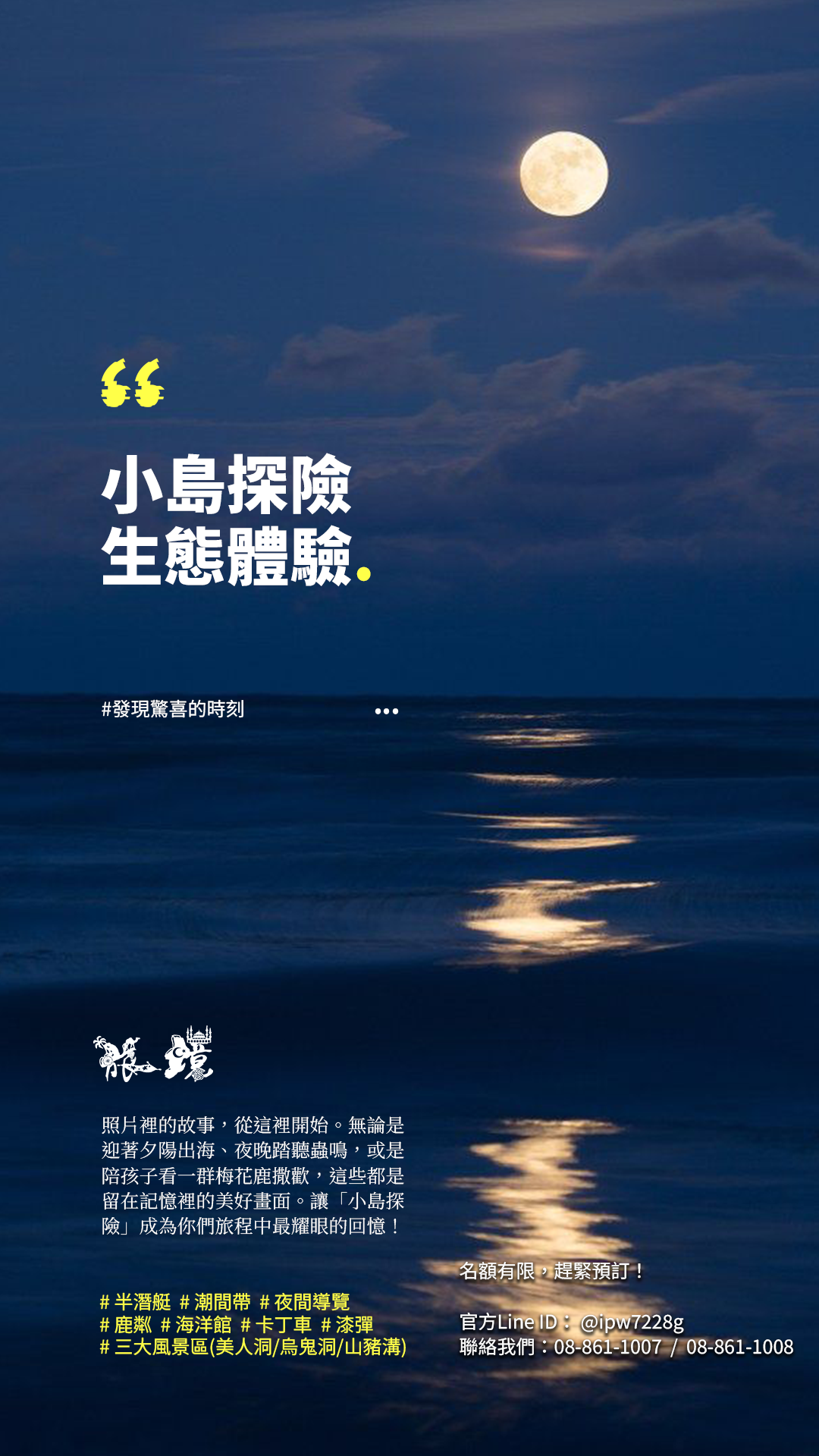 夜晚觀察小琉球特有生態,聆聽海島夜晚的聲音,感受另一種神秘魅力。