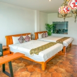 與家人或好友一起旅行,總需要一個能讓大家真正「聚在一起」的空間。景觀泡湯四人房以15坪的寬敞格局,提供兩張6×7尺特大雙人床,讓每位旅伴都能享受舒適睡眠。專屬的獨立陽台,設有休閒椅,白天可以遠眺藍天小琉球,夜晚則能成為談心的小天地。無論是迎接日出的清晨,還是微風輕拂的星夜,陽台的每一刻都自帶一種療癒氛圍。進口磁磚與特色燈飾點綴空間,更增添異國度假的氣息。這間房不只是一個過夜的地方,而是讓「相聚」成為旅程核心的舞台。笑聲、回憶與溫暖,會在這裡悄悄蔓延開來。